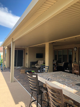 West-Facing Patios — West-facing patios receive the most intense afternoon sun exposure in Las Vegas. Solid covers are the recommended configuration for these orientations because they eliminate 100% of direct solar gain during the hottest hours of the day.